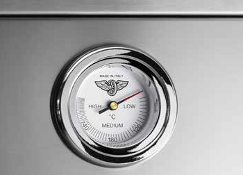 Forno com 56 litros de volume líquido e vidro triplo; Queimadores em alumínio e grelhas em ferro fundido; Arrefecimento tangencial; Equipado com termómetro para umlook profissional