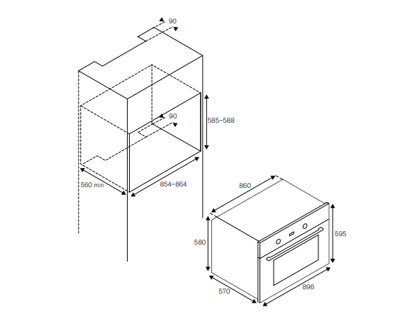 Forno elétrico multifunções de 90x60 cm